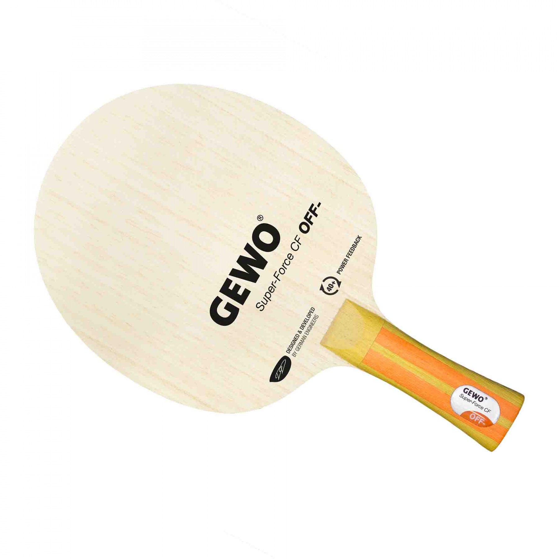 GEWO Super-Force CF is the perfect complement to the GEWO Force series. It is made of three wood plies (Kiri core and Koto and Acacia outer plies) as well as two carbon layers. The Carbon CF used in this blade provides for better control and dependability (Power Feedback) compared to aramid (ARC) or V-Carbon (VC). Super-Force CF is an elastic blade offering amazing control plus great speed and spin for attacking. In passive playing situations, players will enjoy the extraordinarily constant bouncing characteristics (sweet spot) of Force-Tec. The well-balanced ply composition guarantees consistent control in all playing situations. At the same time, the blade has great speed potential and enables a higher ball trajectory to meet the requirements of modern table tennis. In serve/return or blocking/countering situations, you can always rely on the unique feel and “Power Feedback” of GEWO Super-Force CF. A high-end OFF blade!