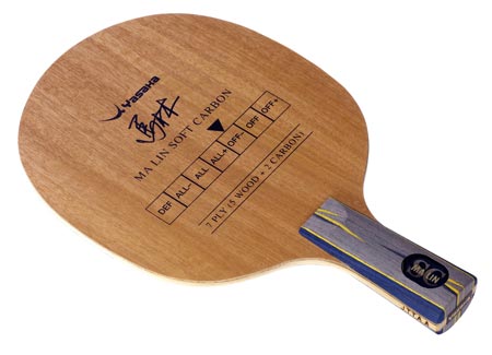 MA LIN SOFT CARBON has the same outer veneer as the famous EXTRA blade. Its medium soft characteristics is appreciated by players who want increased ball feel. In SOFT CARBON Yasaka is using a special, very thin Carbon fibre to improve the speed and enlarge the Sweet-spot. Together with the thicker wooden middle veneer it gives good power. The combination of the power part (carbon+thicker middle veneer) and the softer outer veneer makes Ma Lin SOFT CARBON to the perfect choice for power players who need a good ball feel for best performance.